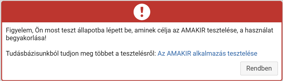A hulladékgazdálkodás folyamatát precíz nyilvántartással kell követni és szigorú számadású bizonylatokkal dokumentálni. Az AMAKIR éles használatba vétele előtt javasoljuk, hogy minden kolléga próbálja ki, gyakorolja az elvégzendő adatfelviteli folyamatokat és a dokumentumok elkészítését anélkül, hogy azzal éles üzleti adatot vinne fel, vagy valós bizonylatot állítana ki. Erre szolgál az ún. teszt állapot. A teszt időszakban javasoljuk a törzsadattárat éles adatokkal feltölteni, és azokkal gyakorolni a napi nyilvántartási feladatokat. A teszt állapotú nyilvántartásban elérhető a számla készítő funkció, a számlákat azonban nem adja fel a program a NAV online rendszerbe. A teszt időszak lezárását követően, az éles indítás során törlődni fognak a tesztelés keretében felvitt induló készletek, anyagforgalmi tételek, mérlegelések és bizonylatok, de a törzsadatok és más jellemzők megmaradnak.
